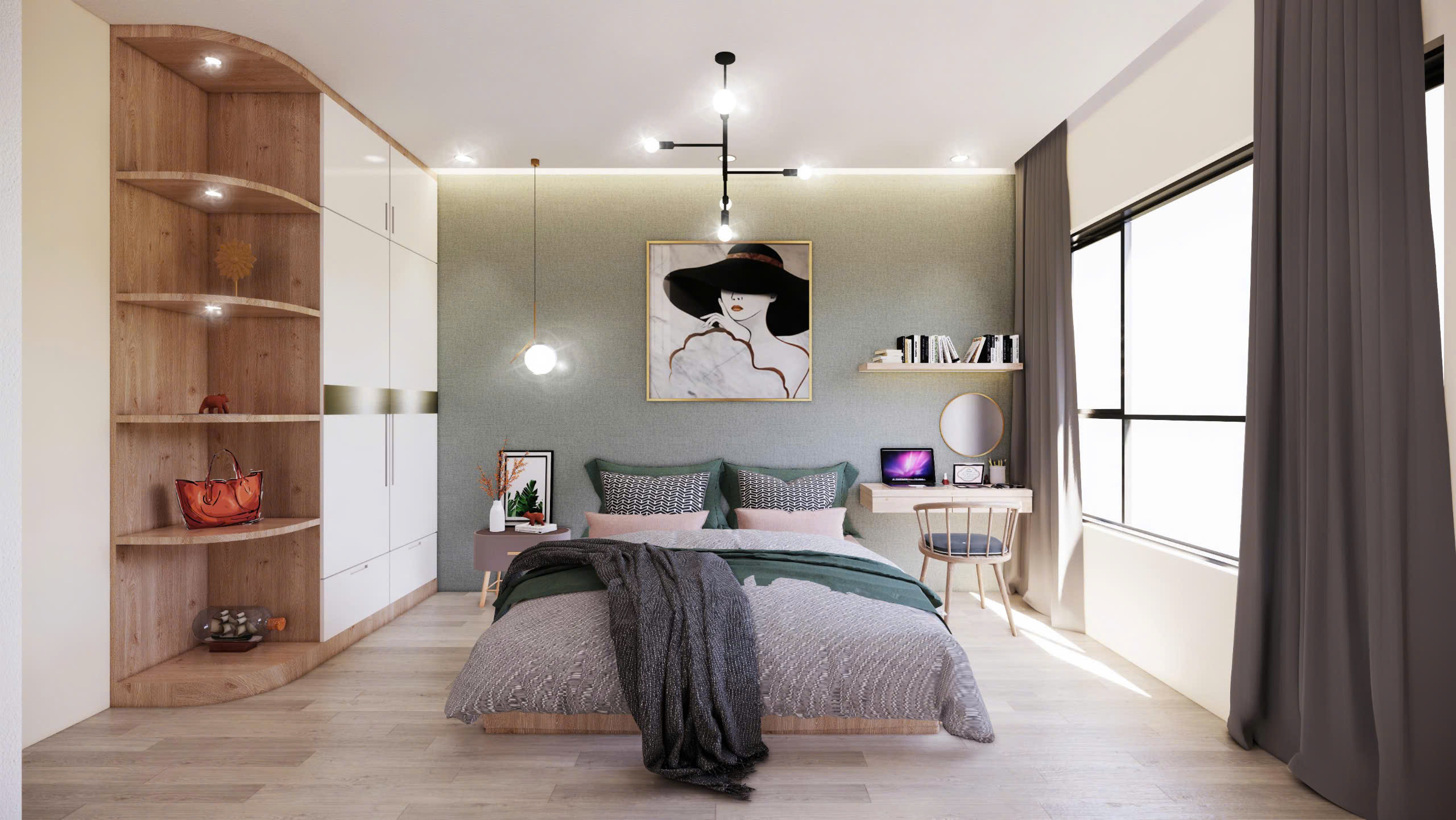 Chính vì thế, khi thiết kế nội thất phòng ngủ, gia chủ nên ưu tiên sự hài hòa, cân đối. Việc sắp xếp cửa lệch nhịp sẽ giúp không gian đẹp mắt hơn. Khi kết hợp ánh sáng và chi tiết trang trí, căn phòng trở nên hài hòa hơn. Tránh được sự đối diện trực tiếp gây bất lợi cho phong thủy và thẩm mỹ.